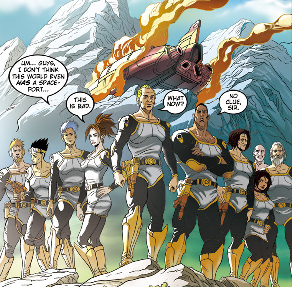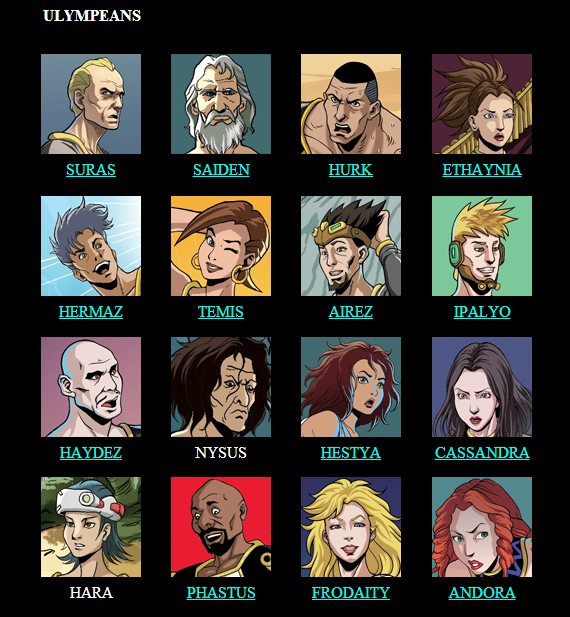 La storia, infatti, parla di due gruppi di astronauti, in contrapposizione tra loro, che finiscono su un pianeta alieno. A contatto con la sua superficie, ciascun membro dei due equipaggi sviluppa particolari poteri in relazione alla sua fisiologia ed alla sua personalità. Ogni personaggio è in un qualche modo ispirato ad un personaggio della mitologia greca, e non solo. Non li elenco per mera ragione di tempo: