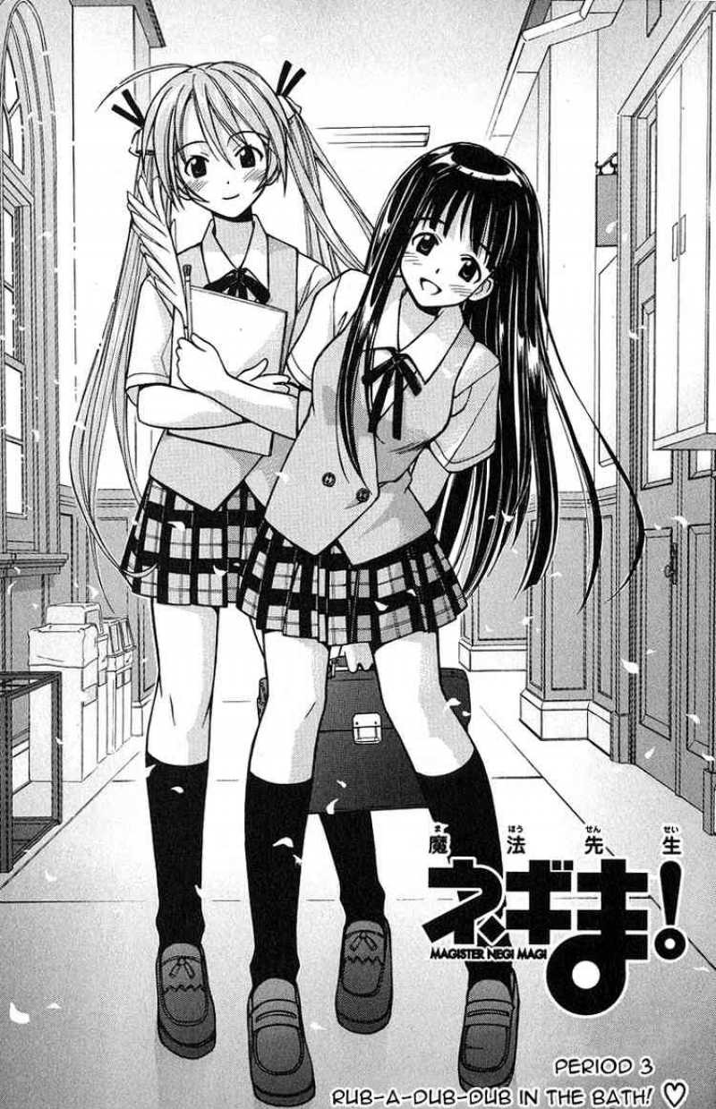 Akamatsu, forse perchè di una casa editrice diversa, rischia molto più del suo collega Masashi Kishimoto, quando decide di iniziare Negima: i parallelismi con il maghetto Harry Potter sono inevitabili; anche il mangaka della Shueisha decise di apportare alcune modifiche sostanziali al suo manga, per evitare di essere accusato di plagio nei confronti della Rowling (Naruto doveva essere un manga di “maghi”, all’origine). Akamatsu non si fa comunque spaventare dal rischio e decide comunque di procedere, sicuro forse di cavalcare l’onda di un successo globale; ma fin dall’inizio appare chiaro che l’unica cosa che accomuna questo manga a Harry Potter è il protagonista: un bambino, che sogna di diventare un grande mago, e che porta degli occhiali. Negi Springfield, un ragazzino di dieci anni, dopo essersi diplomato in Galles in una scuola per maghi, come prova finale viene inviato in una scuola media giapponese dove dovrà insegnare l’inglese a una trentina di ragazzine scalmanate, che saranno le vere protagoniste di questa avventura lunga 38 volumi (in Italia il manga è edito Star Comics, attualmente al 31esimo volume). Poichè la sua classe non poteva essere giustamente composta da persone normali veniamo catapultati in situazioni dove, piuttosto che essere Negi a coinvolgere le persone intorno a lui nei problemi del mondo magico, sono spesso le persone intorno a lui a trascinarlo; Negi, dal canto su0, non si tira mai indietro quando c’è da difendere le sue studentesse.