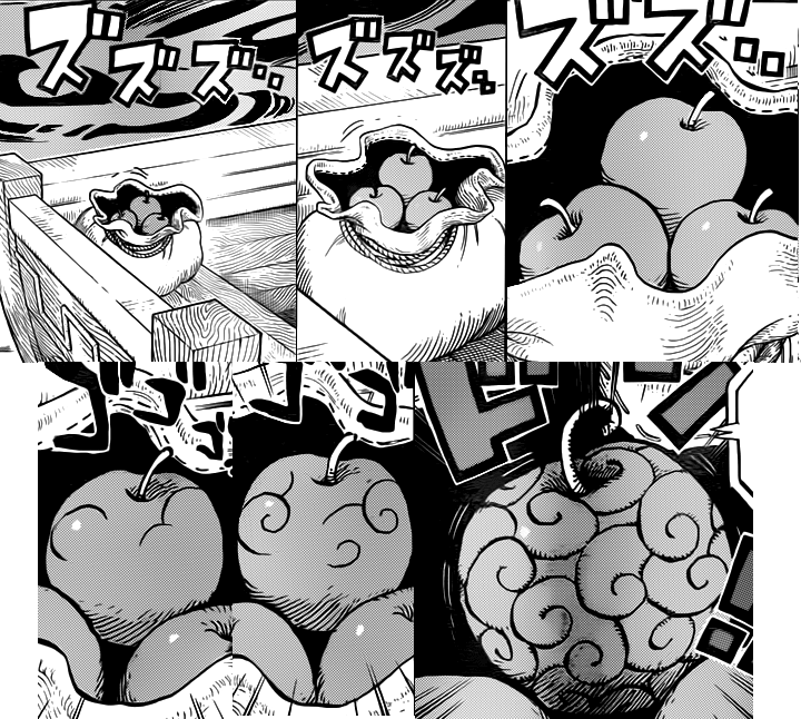 L’esistenza dell’Enciclopedia ci conferma che i Frutti si riformano nel corso degli anni sempre con lo stesso aspetto esteriore perché altrimenti non potrebbero essere riconosciuti ed identificati. Questa premessa è importante perché ci conferma che la forma di un Frutto (se assomiglia ad una mela, pera, banana ecc.) è costante. Finora abbiamo visti tantissimi tipi di Frutti del Diavolo, ognuno con una forma particolare (banane, meloni, ananas e altro).