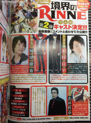 Con la pubblicazione del quattordicesimo numero di quest’anno della rivista Weekly Shonen Sunday edita dalla Shogakukan sono stati annunciati i nomi di nuovi membri del cast dell’adattamento televisivo d’animazione del manga Rinne di Rumiko Takahashi.