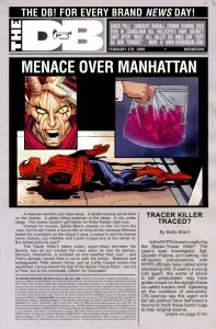 Gli altri personaggi che si sono fatti un ruolo regolare nella serie erano appunto Lilly, Carlie Cooper che è la migliore amica di Lilly e si dedica anche a collaborare col Coroner per via della sua passione per l’investigazione ed in ultimo Vince Gonzalez ossia il nuovo coinquilino di Peter e polizzioto amico di Carlie. Naturalmente questo elenco non tiene conto dei personaggi che ormai ci accompagnano da secoli nell’universo ragnesco come J.Jonah.Jameson e Robbie Robertson per citare alcuni dei più famosi (ho escluso volutamente Zia May che di lei veramente non ne possiamo più). Naturalmente come nella tradizione più aurea delle storie di Spidey ci sbagliavamo e la storia ci ha regalato un colpo di scena in pieno stile pre- Brand New Day… infatti nell’ultima scena di Amazing Spider-Man 585 dopo una furente lotta che vede soccombere Peter l’attenzione si sposta su Harry che torna a casa e trova ad attenderlo la sua promessa sposa… l’unica cosa strana è che Lilly indossa ancora il costume di Minaccia… dopo la fase di strabuzzamento degli occhi ancora mi chiedo come tutto questo sia possibile ma allo stesso tempo mi fa ben sperare per il futuro del ragno e credo che alla fine questo benedetto Brand New Day possa riprendersi e farci gustare storie del ragno di qualità come quelle che ci meritiamo noi lettori di lunga data!