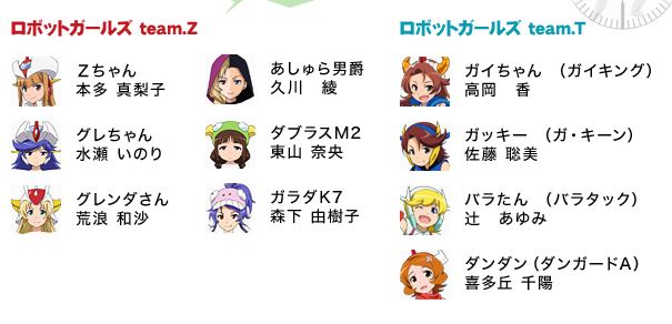 Le quattro doppiatrici andranno a lavorare al fianco di Mariko Honda, voce di Z-chan (Mazinga Z), Inori Minase, voce di Gre-chan (Il Grande Mazinga), Kazusa Aranami, voce di Grenda-san (UFO Robot Goldrake), Aya Hisakawa, voce di Ashura, Yukiko Morishita voce di Garada K7, Nao Tōyama voce di Daburasu M2, Kaori Takaoka voce di Gai-chan (Gaiking), Satomi Satou voce di Gacky (Gackeen), Ayumi Tsuji voce di Bara-tan (Balatack), e Chiharu Kitaoka voce di Dandan (Danguard).