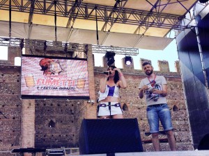 Scrivere una recensione/reportage di un primo evento non è mai cosa facile, bisogna gestire efficacemente le sottigliezze dovute al suo essere “prima volta” da quelle cose che ne minano la credibilità da qui in poi. Una difficoltà che io non avrò però, nel dispiegare la Sagra Dei Fumetti che si è tenuta a Villafranca di Verona il 15 e 16 Giugno all’interno del magnifico castello scaligero che domina il viale principale della cittadina. Due giorni infuocati e non solo per gli eventi proposti ma per via della conformazione del castello che impediva all’aria fresca (qualora ce ne fosse stata) di circolare all’interno delle mura e delle numerose strutture presenti all’interno della location. Il caldo non ha però fatto desistere lo staff benchè meno le persone accorse nei due giorni della manifestazione. A cura di tutto questo abbiamo sei nomi, alcuni di essi autori peraltro di striscie a fumetti che sono già apparse su Komixjam e materiale non ancora affrontato: Simone Bazzanella, Stefania Marino Gambazza, Francesco Fabris, Andrea Lucchi, Alice Gagliardoni Gaspari e Stefano Santilli. Nomi del panorama veronese e provincia che però si ritrovano in altre attività inerenti al mondo del fumetto e dell’animazione, i primi sono fondatori dell’associazione ThinkComics e della striscia umoristica Happy Jesus mentre Andrea Lucchi è il bassista/voce dei Poveri Di Sodio, una band attiva nel veronese e non solo che ha fatto delle sigle storiche del cartoon il suo marchio di fabbrica.