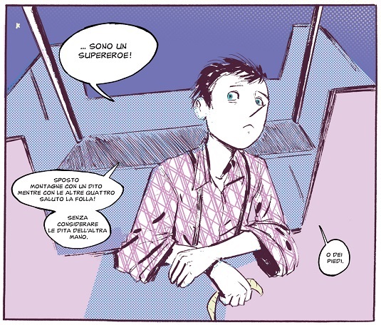 “A proposito… anche se sono in un momento di stanca… sono un SUPEREROE!”