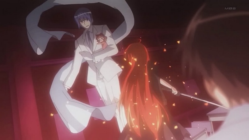 Non ho intenzione di lanciarmi in un’analisi di tutti i personaggi della serie (sarebbe una follia e poco interessante) ma voglio comunque spendere due parole sugli antagonisti. Come dicevo nella prima parte sono presenti nemici ricorrenti, come i membri della Triade del Bal Masque tra cui vi è uno dei miei personaggi preferiti: Sydonay, enigmatico e pragmatico ha sempre “bucato lo schermo“. Menzione particolare su Sabrac, uno dei nemici più forti tra quelli affrontati, e uno di quegli avversari con il quale viene dato vita a uno degli scontri più belli di tutta la saga verso la conclusione della seconda serie. Il modus operandi di Sabrac mi ha ricordato per certi versi quello degli Stand a controllo remoto de Le bizzarre avventure di Jojo: questi si annuncia con un potentissimo attacco a energia, e poi inizia a dare la caccia agli eventuali sopravvissuti uno alla volta attaccandoli con lame le cui ferite non possono essere guarite (almeno in teoria). Per quanto riguarda la sua ragione di vita, gli viene dedicato un piccolo spazio nella terza serie, arricchendo un personaggio che fino a quel momento poteva essere considerato tanto scialbo quanto potente. I vari Tomogara che compaiono sono estremamente ben caratterizzati, almeno quelli centrali, in alcuni ho rivisto lo stile degli antagonisti di Sailor Moon (soprattutto nel caso di Friagne, il primo a comparire nella serie) ma essi non hanno un’anatomia generalmente condivisa, sebbene i più importanti tendano ad assumere una forma antropomorfa (i Re di Guze invece si manifestano sempre sotto forma di oggetti). Qui sotto trovate qualche esempio, per il resto tornerò su Shakugan no Shana il mese prossimo: vi anticipo che nella terza parte verterà sul piano di Yuuji nella terza serie e vi lascio con u/n di Mami Kawada, usata come sigla di chiusura per il quindicesimo episodio della terza serie.
