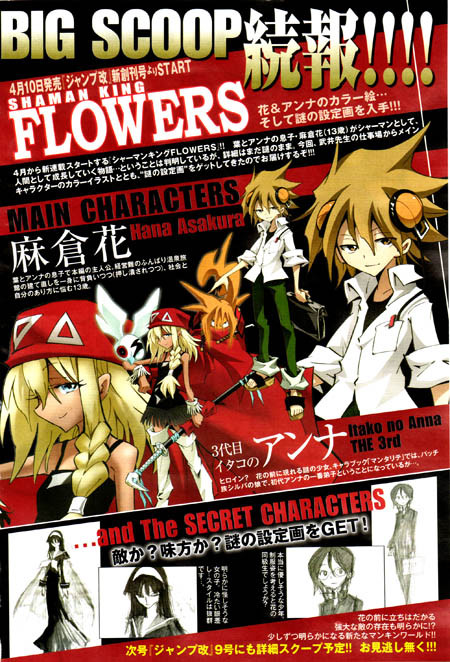 Anche per Shaman King Flowers è ormai imminente l’atteso D-Day: il 10 aprile sarà disponibile in Giappone il numero di Jump X (Jump Kai) che, con tanto di copertina dedicata ed un capito di 45 pagine, segnerà l’inizio di questa nuova avventura per Hiroyuki Takei.