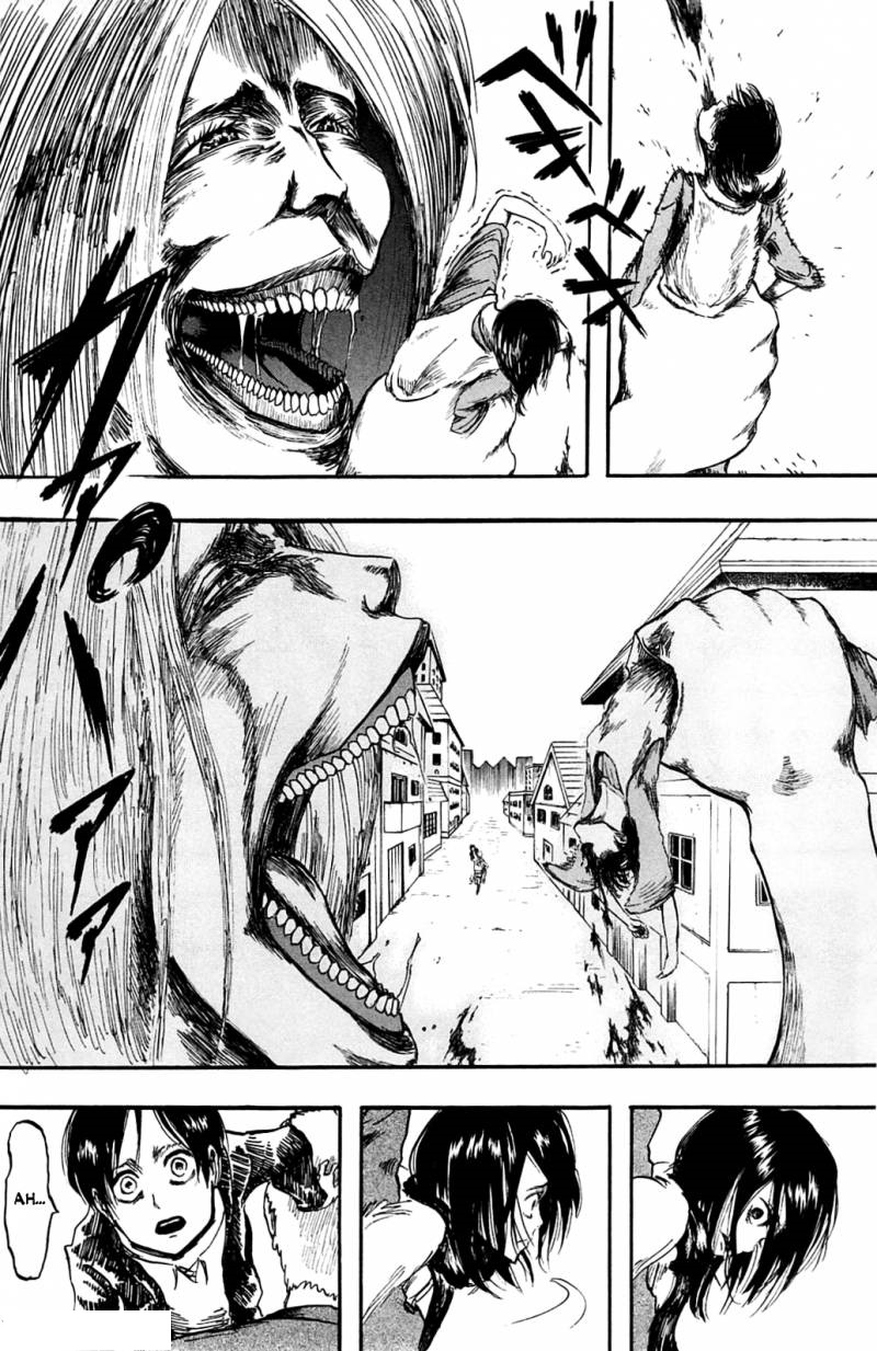 L’apparizione del Gigante Bestia è il primo dei tanti imprevisti: questa figura avrà sicuramente un ruolo chiave nella storia, sia come antagonista, sia come fornitore di informazioni. Dai suoi commenti, dal fatto che non ha mai visto prima della sua apparizione nel manga un’apparecchiatura per il combattimento tridimensionale, per il fatto che sceglie attentamente che lingua usare e tratti il suo avversario come un nemico mortale che conosce il suo punto debole, è indubbio che questi sia molto vecchio. Sicuramente non è più molto “umano“, sebbene potrebbe assumere questo aspetto, è un elemento esterno al mondo che abbiamo conosciuto fino a questo punto, un essere che ha vagato per tanto tempo e che possiede conoscenze che potrebbero ritenersi perdute. Fatto sta che l’arrivo del Gigante Bestia ha due effetti disastrosi: la trasformazione di tanti umani in Giganti, come la madre di Connie, e l’attivazione di questi anche di notte, confutando anche la teoria che i Giganti siano attivi soltanto durante le ore diurne. Semplicemente, l’attività notturna, potrebbe non fare parte del set di abilità basilari che la trasformazione conferisce. A complicare la situazione, il fatto che dopo la tremenda scoperta che dentro le mura ci sono Giganti e la cattura di Annie, molti membri del corpo di ricognizione sono sprovvisti di equipaggiamento e lasciati ai domiciliari. Alcuni si muovono dopo la notifica della comparsa dei Giganti all’interno delle mura per chiudere il foro da cui sono entrati, che ovviamente non verrà trovato…