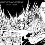 Ma la caratteristica (vincente per il sottoscritto) che differenzia Roto da Dai è la presenza nel primo di una figura che funga perfettamente da precisa contrapposizione al protagonista, un erede di sangue sacro come Arus, ma maledetto dall’acquisizione in tenera età di un nome che gli ha conferito i poteri di un signore del male. Jagan, erede di Roto (il primo prode) come Arus, è un antagonista perfettamente riuscito secondo i canoni dei manga degli anni ’90, proprio in virtù del suo essere speculare al protagonista: dove Arus è luce e speranza, Jagan e buio e disperazione; sentimenti, questi, che nel manga trovano ampiamente voce costruendo un personaggio a tutto tondo, segnato soltanto dalla sua angoscia e follia, che in certi momenti ruba il palcoscenico al protagonista e quasi porta il lettore a tifare per questo povero diavolo. Laddove molti vedono il personaggio di Vegeta come archetipo che ha ispirato la figura di Jagan, per il complesso legame di emozioni e motivazioni che la sua vicenda intesse ho sempre preferito il secondo al primo.