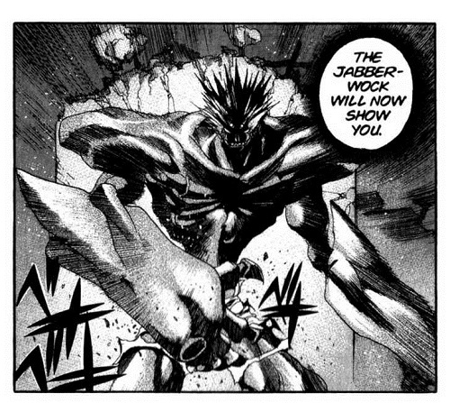 Ryoji era già famoso per aver realizzato il manga fanta-archeologico Spriggan, opera nata probabilmente dall’influenza che negli anni ’80 aveva la serie di film di Indiana Jones. Insieme a un nuovo compagno di avventura si presenta al pubblico con un manga breve ma intenso, arricchito da tematiche di ogni genere, mai pesante e animato da un ritmo narrativo particolarmente “shonen“. Arms racconta le vicende di Ryo Takatsuki, giovane studente giapponese che si trova al centro delle macchinazioni di misteriose agenzie che vogliono sfruttare le nanomacchine che gli sono state impiantate nella sua infanzia. Questo ritrovato della tecnologia, oltre a fornirgli svariate abilità nel corso della serie, come resistenza fisica e la possibilità di guarire miracolosamente ferite anche gravi, lo mette in contatto con una sorta di “intelligenza” dalle origini misteriose che quando risvegliata brama l’annientamento di ogni cosa. Questo spirito distruttivo prende il nome da uno dei personaggi dell’universo creato da Lewis Carroll, egli è il Giabbervocco, la mostruosa lucertola alata armata di zanne e artigli che popola il mondo di Alice nel Paese delle Meraviglie. Tutto Arms, inoltre, cita e sfrutta personaggi presi dalle filastrocche di Carroll, aspetto che è un innegabile valore aggiunto per tutta l’opera. Non solo techno-horror e filastrocche: in questo manga è possibile trovare di tutto, dalla scienza alle arti marziali, e la classica analisi dei legami che le persone stringono, della famiglia e dell’amicizia.