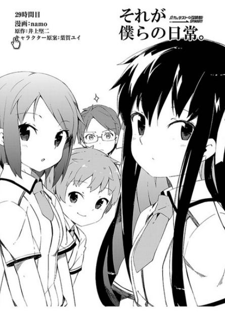 Sull’ultimo numero di Famitsu Comic Clear, una rivista di manga on-line che permette ai propri utenti di leggere gratuitamente tutti I manga che ospita, è stato dato un annuncio in merito al manga Sore ga Bokura no Nichijō. Il manga, disegnato da namo, si concluderà infatti con la pubblicazione del prossimo capitolo, il trentesimo.