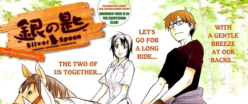Il primo impatto con questo manga non è stato dei migliori, non perchè non riconosca agli autori il diritto di reinventarsi e cambiare genere di storie come più gli aggrada (anzi, credo sia una delle qualità fondamentali di un vero autore), più che altro per quello che è il mio rapporto personale con l’opera principale di Arakawa, di cui non sono un fan. Quando venni, pertanto, a sapere che il suo nuovo manga parlava delle vicende riguardanti un istituto di agraria, non sono riuscito seriamente a prendere in considerazione di leggere Silver Spoon. Poi, a Lucca, allo stand Panini, me lo sono trovato davanti al prezzo di vendita promozionale (come accade spesso per il primo volume di molti manga), e ho deciso di aggiungerlo alla lista delle cose da prendere… ho letto il volume durante il mio viaggio in treno tra Terni e L’Aquila, senza occhiali e quindi con estrema difficoltà.