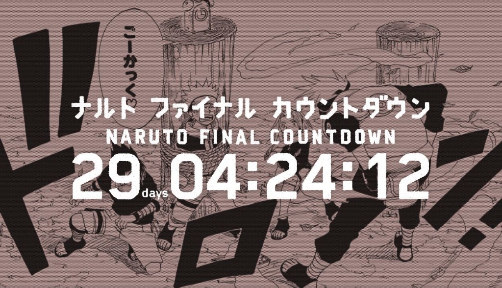 Venerdì di questa settimana è stata creata una nuova pagina sul sito web ufficiale del franchise di Naruto. La pagina è chiamata Naruto Final Countdown e suggerisce l’inizio di un “gigantesco” nuovo progetto, il cui inizio corrisponderà col giorno in cui Masashi Kishimoto pubblicherà l’ultimo capitolo del manga di Naruto, e cioè il 10 Novembre. Il sito web ha anche aggiunto una seconda nuova pagina che mostra una timeline dove sono stati raccolti gli eventi più importanti che hanno contraddistinto i quindici anni di pubblicazione del manga, con descrizioni e citazioni in giapponese e in inglese.