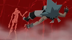 Inizia lo scontro fisico, i poteri dei due titani sono incredibili e stupefacenti… Shinigami combatte senza DeathScythe mentre il Kishin non ha ancora riacquistato tutto il suo potere tuttavia essi riescono a modificare completamente l’atmosfera e gli edifici di Death City.