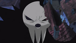 Non appena il Kishin riemerge dalla prigione sotterranea, arriva Shinigami-sama con lo scopo di fermarlo. L’incontro verbale è breve tuttavia veniamo a conoscenza della “trasformazione” di Shinigami: da combattente a maestro, da “temibile” a “comico… Come dice il Kishin egli ora sembra la parodia di sè stesso.