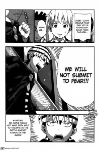 Tuttavia i personaggi vivono in un mondo completamente differente da quello descritto all’inizio del manga, mondo che hanno creato con le loro stesse mani: con Kid che diventa il nuovo Shinigami tante cose cambieranno, e il futuro del mondo verrà lasciato in mano al genere umano. Non solo, la secolare guerra contro le streghe è terminata, e Soul Eater Evans verrà ricordato come l’ultima Death Scythe, ma la follia del Kishin non è stata ancora del tutto sconfitta e la Paura continuerà a minacciare la vita sulla Terra. Ciò che i personaggi tramanderanno sarà il Coraggio, necessario per affrontare anche la più buia disperazione, in preparazione del giorno in cui la follia tenterà nuovamente di corrompere il mondo con i suoi oscuri tentacoli. Tuttavia, sempre nella sua intenzione di guardare al futuro, Ohkubo decide di chiudere lasciando aperta una riflessione sulla maternità (simboleggiata dal seno), che dopo tutta la follia e la paura globalmente trasmessa, è il primo messaggio positivo che viene inviato al genere umano.
