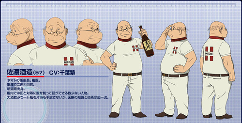 Shigeru Chiba innanzi tutto, interpreterà il Capitano di Fregata Sakezō Sado, il medico ufficiale nato a Niigata e noto per il fatto che ama bere sake ogni qual volta si presenti l’occasione.