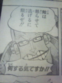 Kizaru: I’m looking for a man named Sentoumaru (spelled with a “peach”, just another Momotaro reference like the 3 Admiral)Usopp: What, is that it Robin!? Aren’t you letting go of a great chance right now?