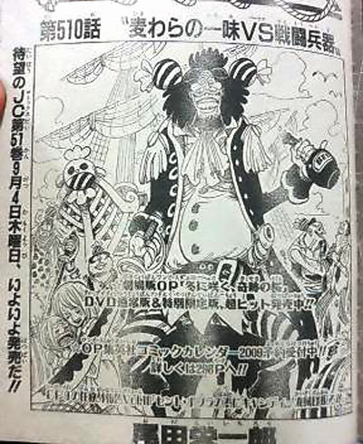 Ecco a voi i primi spoilers riguardanti il prossimo capitolo di One Piece (509). Continuate se volete leggere le anticipazioni. Niente traduzione italiana degli spoiler questa settimana, mi dispiace.
