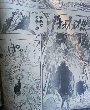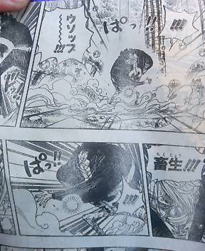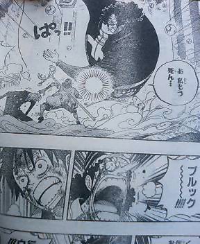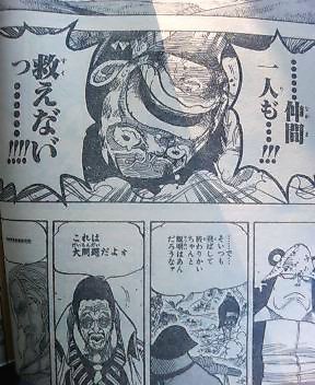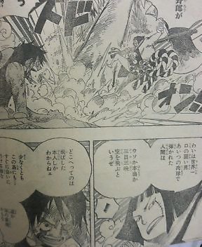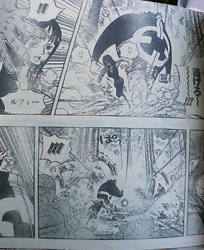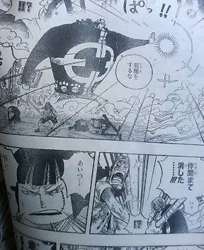 Nami: No mistaken about it…I’ve seen that power before. A girl was erased just like that at Thriller Bark, and never returned…Sentoumaru: Kuma!!! Why is that bastard here!!