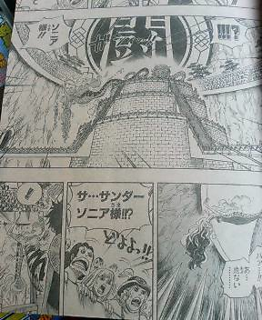 Luffy holds up a victory sign with his fingersSonia: It’s hot! hot!! help me!!!