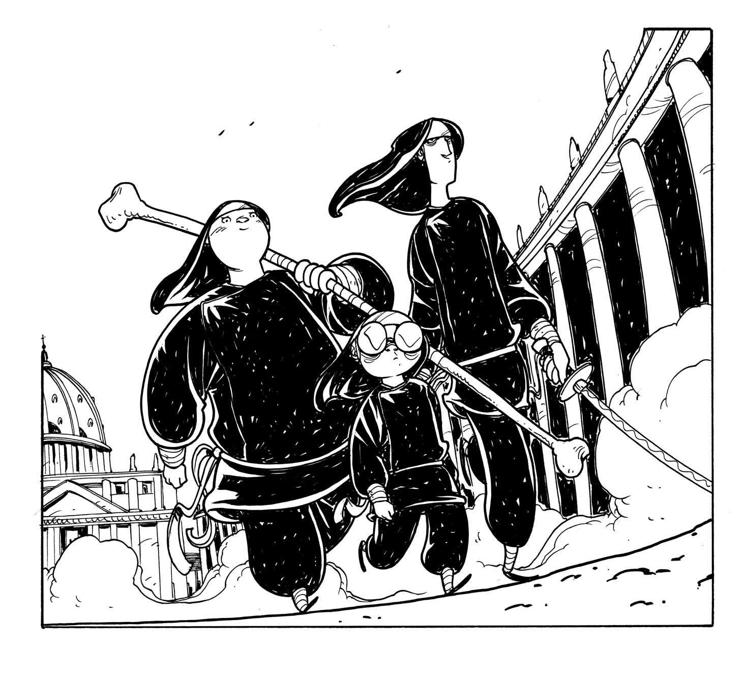 Sono Suor Xena, Suor Gegia e Suor Adalgisa, e proteggono l’umanità da zombi gay e giganteschi robot messicani. Sono le Suore Ninja, e dal 14 marzo potremo leggere le loro avventure.