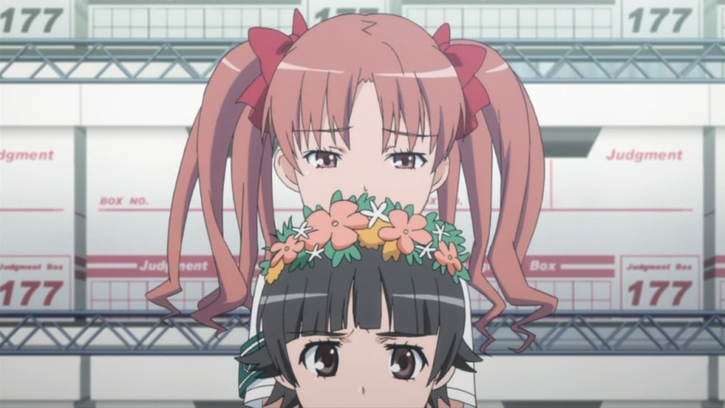 Commento: episodio carino ma nulla più che inizia a rivelare parte del passato delle nostre protagoniste e degli incroci che il destino ha loro riservato quando ancora non erano le intrepide studentesse – guerriere rori che sono ai giorni nostri ^^ Detto questo, la visione della puntata non è né inutile né noiosa… manca solo quella spruzzata di allegria e comicità demenziale ma tanto esilarante che ha fatto la fortuna dei precedenti episodi, in special modo il 4° che rimane tuttora il meglio di questo inizio: la protagonista indiscussa di oggi è Kuroko con la partecipazione straordinaria di Uiharu… Carletto e i detrattori di tsundere-chan sono avvisati ^^