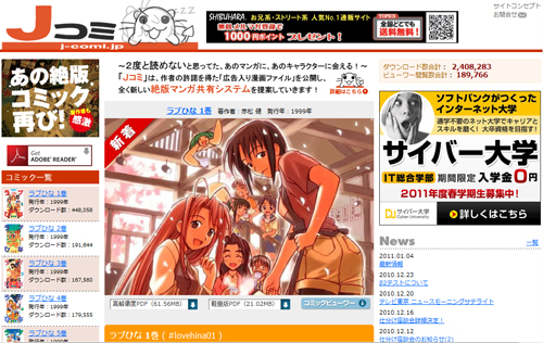 J-Comi, di cui ci aveva già parlato il nostro Shikaku, è un portale web nato per iniziativa del mangaka Ken Akamatsu, sul quale verranno distribuiti gratuitamente manga fuori catalogo, ovviamente con l’autorizzazione degli autori e con il supporto finanziario della pubblicità. Ecco il link al sito di J-Comi, www.j-comi.jp .