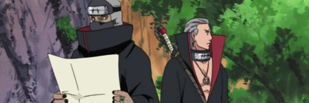 Riassunto. Mentre il villaggio si sta riprendendo dall’invasione, giunge un rapporto da Jiraiya e Kakashi (partiti per spiare un’eventuale spostamento di Alba ai confini del paese) nel quale viene affermato che due ninja stanno sconfiggendo i paesi confinanti: si tratta proprio di Hidan e Kakuzu. Questi, nel frattempo, riescono a sconfiggere Nii Yugito trasformata in demone Gatto e Kakuzu, alla fine dello scontro, afferma che il loro prossimo obbiettivo sarà il Paese del Fuoco.