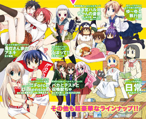 La testata ospiterà manga di quattro pannelli che abbiano collegamenti con altri media, come light novel (il termine light novel si riferisce a quei romanzi pubblicati in Giappone di lunghezza relativamente breve, illustrati e destinati a un pubblico giovane) e anime. La scelta non è nuova per la casa editrice, essendo due delle sue riviste più famose (le già citate Asuka e Sh?nen Ace) focalizzate su spin-off e serie parallele.