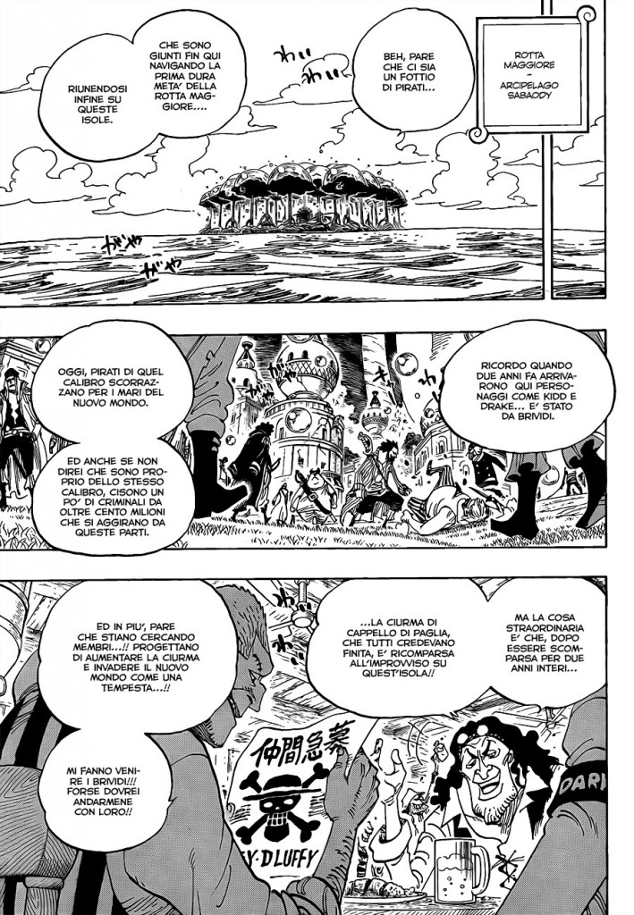 Nello scorso capitolo abbiamo avuto un’interessante conferma: la taglia di Rufy non è l’unica fra quelle dei Mugiwara ad essere stata aggiornata, ma andiamo con