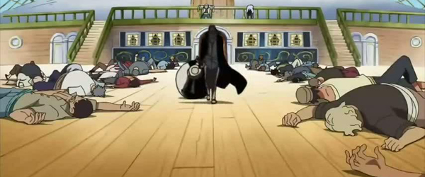Titolo: Contatto! Il grande spadaccino Mihawk – La lotta della forza di volontà di Zoro Riassunto: la scena si sposta sull’isola Kuraigana, isola in cui
