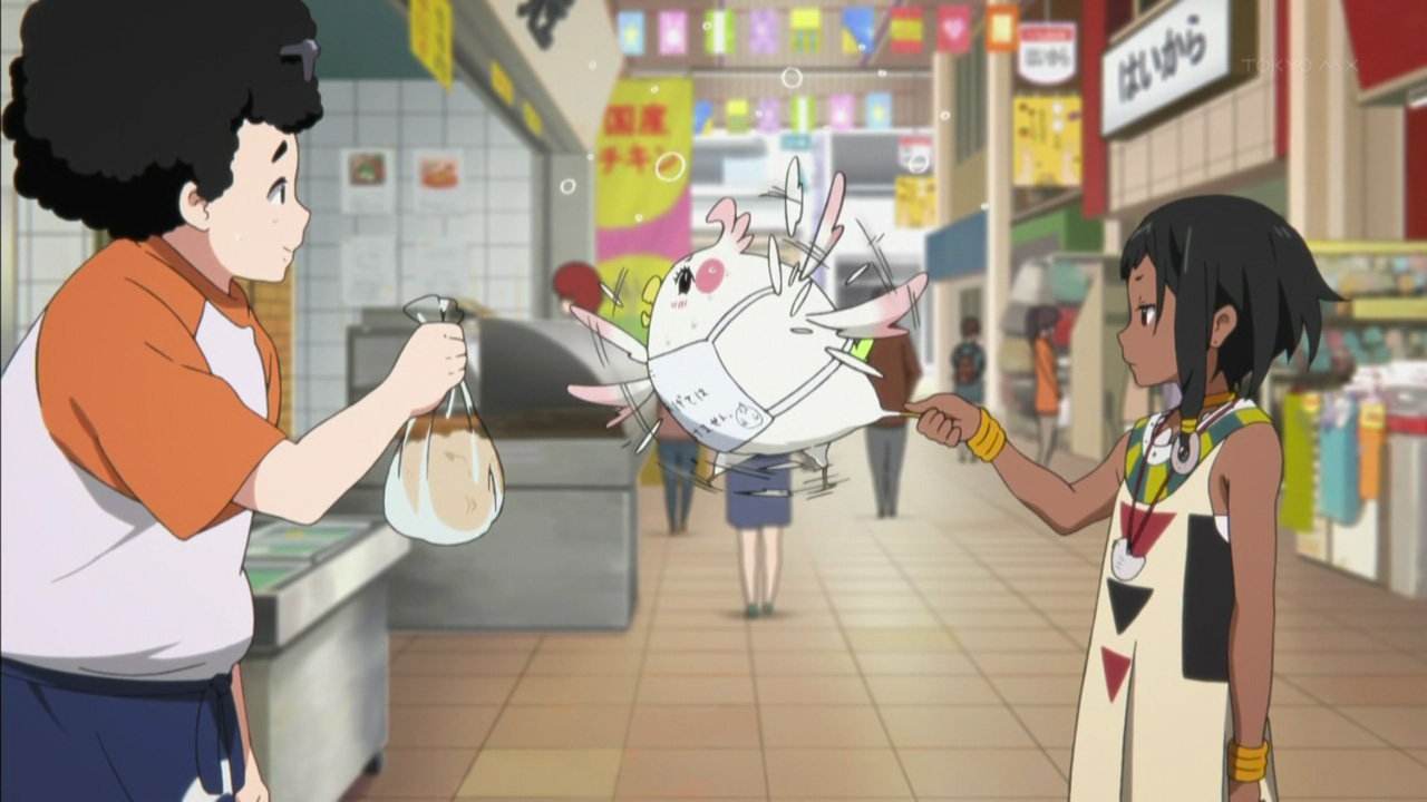 Choi viene introdotta all’ambiente scolastico, al docente, a Shiori e alle compagne di club di Tamako. Poichè, come dicono le scritte minuscole sui lati delle confezioni dei cibi, una dieta se non è accompagnata da esercizio fisico serve a poco, ecco che Dera viene messo in mezzo al club di majorette di Tamako. Messo in mezzo letteralmente. L’allenamento consiste alle 5/6 componenti di passarsi i rispettivi bastoni facendoli roteare per aria. Il nostro pennuto dovrà volare tutto il pomeriggio evitandoli. La scuola è finita, ma un vento freddo lungo la strada verso casa preannuncia l’arrivo dell’autunno.