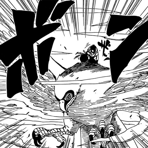 Falchi: anche in questo caso abbiamo un solo esempio di evocazione simile. Sasuke, nel combattimento contro Danzo, evoca un falco e lo utilizza come supporto per muoversi a mezz’aria. Non è chiaro se possegga abilità particolari o se sia in grado di parlare, ma anche Tobi si stupisce dell’arrivo inaspettato di una nuova Kuchiyose, chissà che non ci sia altro sotto. Dove ha trovato questa (queste?) creatura? Ha stipulato un contratto o lo controlla con lo Sharingan come fece con Manda?