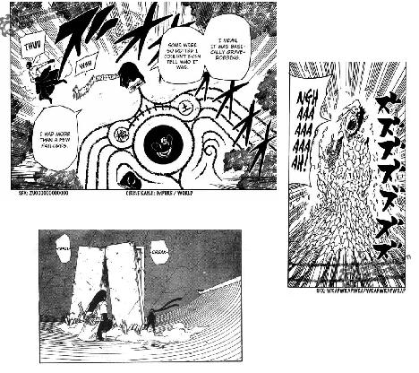 Vi faccio un esempio pratico: con il “Sigillo Yin: rilascio” Tsunade stimola le proteine sulla sua fronte e le libera (una sorta di illusione che costringe il suo corpo a produrle, non utilizzarle e poi a rilasciarle?), con questa energia concentrata può poi utilizzare due tecniche eccezionali ovvero la “Rinascita” o “Sozou Saisei” con la quale cura ogni ferita, la “Forza centuplicata” o “Byakugou” con la quale centuplica la sua potenza d’attacco e comunque cura ferite anche estremamente estese (lo spadone del Susanoo di Madara). Secondo me più che arte dell’Ombra somiglia all’arte della Luce in quanto in questo caso si agisce su un’attività corporea, ma non mi spiegherei in tal caso perché il nome “Infuin” (Sigillo Yin appunto).