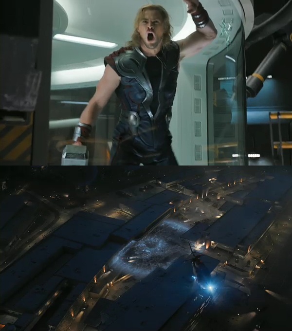 Purtroppo dalle immagini ancora non si riesce a capire chi siano i fantomatici “alieni” di cui si parla nel trailer… Skrulls, Giganti dei ghiacci, Chitauri? Credo che gli Skrulls siano da escludere perché Giganti dei Ghiacci e Chitauri avrebbero un legame più plausibile con la storia del film fino ad ora. Considerando che il villain del film è Loki, l’idea dei Giganti dei Ghiacci sembrerebbe la più plausibile, però c’è da considerare l’aspetto tecnologico. Il popolo di Jötunheimr non è certo famoso per la scienza; al contrario, questa caratteristica, è tipica dei Chitauri. Questi sembrerebbero, seguendo il ragionamento per il quale, il film degli Avengers segue l’universo Ultimate, la scelta più probabile.
