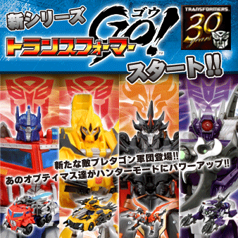 La Takara Tomy ha annunciato il lancio di una nuova linea di giocatoli del franchise dei Transformers intitolata Transformers Go! che dovrebbe essere messa in vendita nel corso di questo mese. Insieme ai nuovi giocattoli dei Transformers, inoltre, arriverà nei circuiti televisivi giapponesi anche una nuova serie d’animazione ispirata a Transformers Go! Ulteriori dettagli sul nuovo anime dei Transformers saranno resi disponibil più avanti sul numero di Luglio della rivista Terebi-kun (TV-kun) della Shogakukan e sulla rivista TV Magazine della Kodansha, in vendita l’1 Giugno.