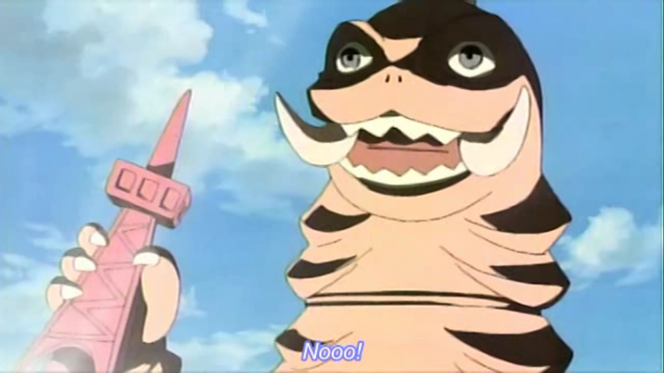 Ognuno di questi mostroni poi è una citazione a qualche creatura che ha combattuto con Godzilla o eroi nipponici simili, altri invece sono caricature di figure molto note a noi appassionati di anime: come il mostro fumettista o i nemici ricorrenti di Ultraman, e nel caso dell’ultimo episodio, il mitico Mazinga. Ovviamente questi, il più potente di tutti, può essere sconfitto solo con il potere dell’amore che la protagonista prova nei confronti di Makoto… basta con queste scempiaggini! La cosa che più odio è quando il tono scanzonato e umoristico viene mantenuto per gran parte della serie e poi il regista di turno, immedesimatosi nel portatore di qualche importante messaggio, si sente costretto a riportare la normalità mettendosi a retribuire di serietà la vicenda. Questo mettendo in pericolo la vita stessa dei personaggi, e chiamando in causa eroici sacrifici che per carità fanno sempre pensare a cose belle, ma mai una volta che ti stupiscano veramente e qualche personaggio MUOIA. Mai una volta che questo tipo di finale valorizzi realmente una serie; mai una volta che qualcuno si ricordi del fatto che terminare una storia è un’operazione progressiva da compiere in rispetto di tutti gli elementi fin’ora presentati, e non un taglia e incolla con qualche pessimo anime terminato la stagione precedente; mai una volta che mi venga dato torto, e che serie di questo stampo conservino la loro integrità, nel bene e nel male.