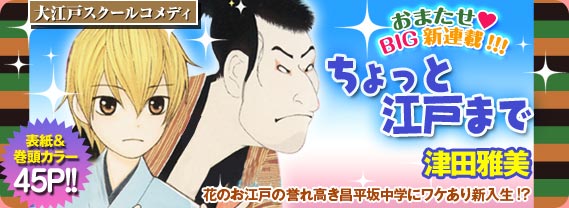 Sul numero di Settembre della rivista mensile di manga per ragazze LaLa, edita dalla casa editrice Hakusensha e uscita questo sabato, è stata data la notizia che l’autrice di manga Masami Tsuda concluderà la pubblicazione del suo ultimo lavoro dal titolo Chotto Edo Made sul prossimo numero della rivista, in uscita il 24 Agosto.