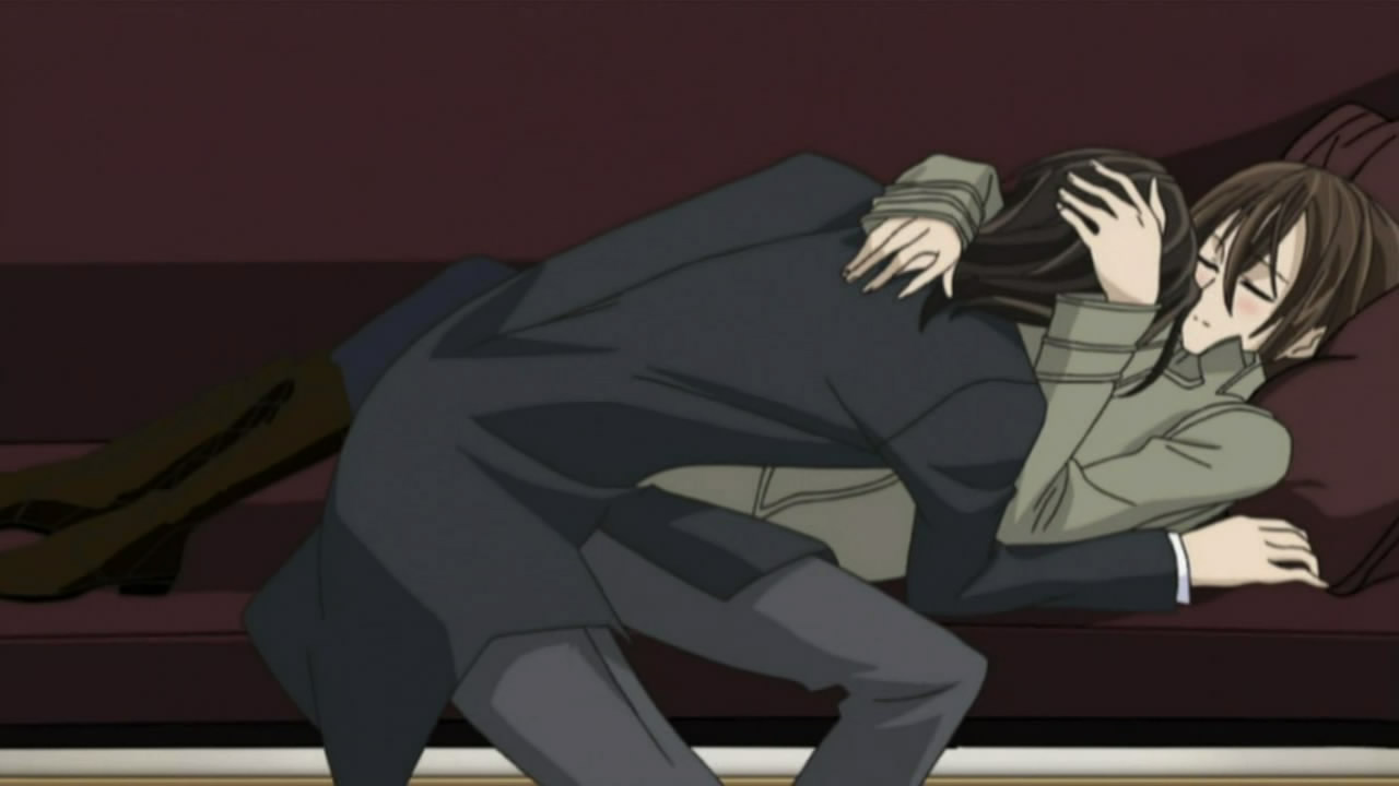Yuki è tornata nella stanza dove si era svegliata, rimuginando sul fatto che lei e Kaname vivono in due universi lontanissimi tra loro. Kaname entra e la rimprovera per essere uscita nonostante gli avvertimenti del Vampiro. Lui quindi le dice che stavolta non la perdonerà, e si appoggia a lei dicendo che vuole riposare così finchè non l’avrà perdonata.