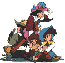 Siamo nella Francia del 1600, lo squattrinato D’Artagnan si reca a Parigi per intraprendere il mestiere di moschettiere al servizio del Re di Francia Luigi XIII. Qui fa conoscenza dei tre moschettieri più famosi, Athos, Portos e Aramis i quali lo accompagneranno attraverso tutta la sua avventura. Tra intrighi a corte, lotte di potere e politiche estere D’Artagnan riesce finalmente a sconfiggere il suo acerrimo nemico, il Cardinale Richelieu, diventando così luogotenente dei moschettieri. La serie è stata creata nel 1984 e trasmessa in Italia nell’87 su Italia1. Questa serie non segue esattamente la storia del famoso libro, ma differisce in alcuni particolari come per esempio il finale oppure il fatto che Aramis è una donna. Nonostante questo la serie è piacevole da seguire e molto divertente.