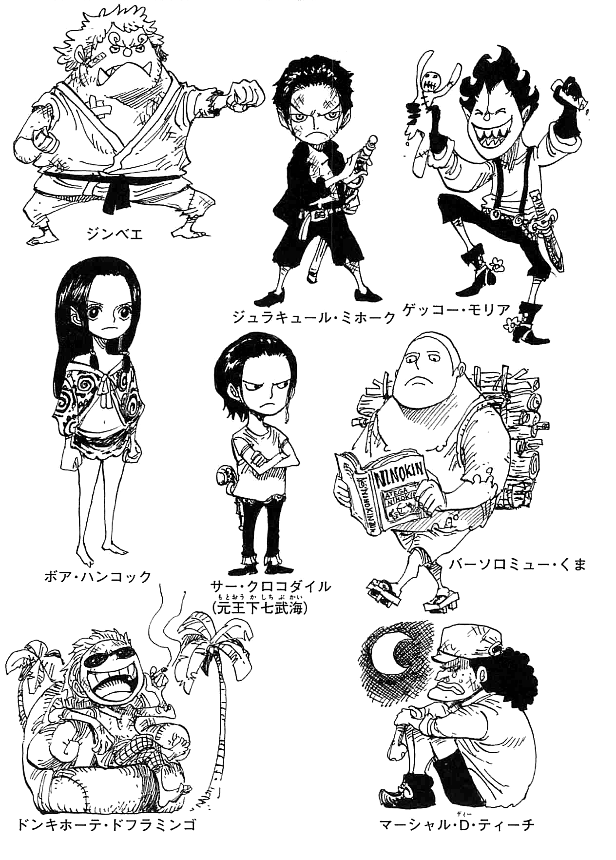 Oda ci disegna gli otto membri della Flotta dei Sette così come erano da bambini. Ecco alcune considerazioni per ognuno di loro.