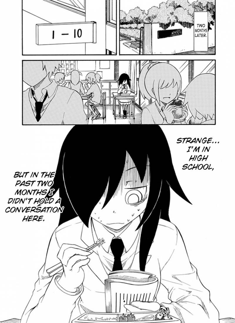 Perchè ho letto Watamote, vi chiederete… semplice, come molti seguo materiale ancora inedito in Italia e che probabilmente non arriverà mai da noi, risorsa fondamentale sono pertanto i siti di scan online: lessi il titolo tra gli aggiornamenti e ne rimasi incuriosito (anche perchè all’epoca si avevano solo cinque capitoli). Si tratta di un manga umoristico, con le connotazioni tipiche degli “slice of life“, costruito da capitoli brevi (tra le 10 e le 15 pagine) a volte ulteriormente divise in piccole storie di 3 o 4 pagine. Il manga è pubblicato sulla rivista GanGan Online della Square Enix.