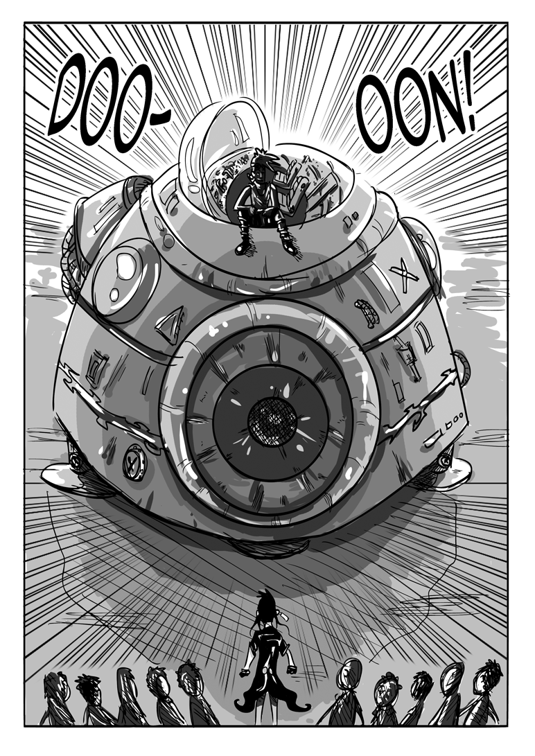 Nell’articolo di presentazione ho scritto che “varrebbe la pena leggerlo già solo per la criptica presentazione fatta dall’artista… ah già vi ricordo che Yachiru ha già indossato l’alloro dei vincitori”… ora che sono chiamato a dirvi la mia posso apertamente dire che vale la pena leggerlo perché è un capitolo ben fatto; “nasce” benissimo e si chiude in maniera concreta, come dovrebbe chiudersi un primo capitolo; mi spiego meglio: il capitolo si apre con una bella pagina (totalmente in stile manga) in cui l’artista, mostrando immagini diverse, inserisce una descrizione, in soldoni, di che mondo ci si parerà davanti leggendo World Engineers. Pagina 1, insomma, è ben disegnata e ben congegnata, riuscendo subito ad incuriosire il lettore.
