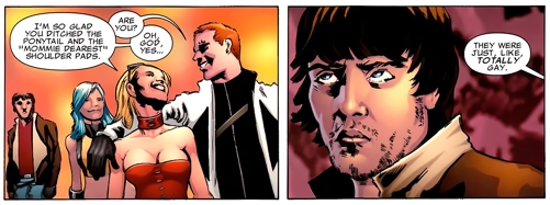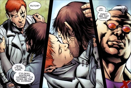 Vi cito un esempio: due membri del team, cioè Rictor e Shatterstar, si innamorano e cominciano una relazione(anch’essa trattata in maniera non banale), che era stata più volte suggerita seppur velatamente.