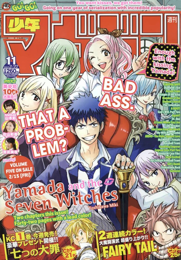 Miki Yoshikawa ha cominciato a pubblicare il manga di Yamada-kun to 7-nin no Majo a Febbraio dell’anno scorso, e la serie è attualmente in corso di pubblicazione su Weekly Shōnen Magazine della Kodansha. La casa editrice ha fatto uscire il settimo volumetto del manga lunedì di questa settimana.
