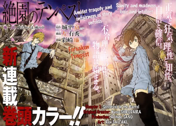 La pubblicazione del manga di Zetsuen no Tempest: The Civilization Blaster è cominciata nel 2009 e la Square Enix farà uscire il sesto volumetto proprio Sabato di questa settimana. Kyou Shirodaira, autore della storia, è anche autore di un altro manga dal titolo Spiral, che è stato già adattato in animazione.